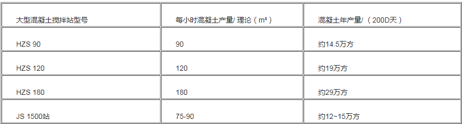 所以說,大型攪拌站的混凝土年產量多少,主要跟攪拌站的型號有關。